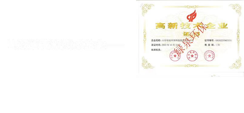 • 山東綠泉環保科技股份有限公司成立于2001年6月,位于濟南高新技術開發區,是一家以水處理、環保節能技術和裝備為核心集研發設計、施工制造、環保設施運營、技術服務于一體的高科技企業,擁有國家建設部和生態環境部頒發的環境工程設計甲級資質、山東省建筑工程管理局頒發的環保工程專業承包壹級資質、市政公用工程施工總承包貳級資質以及安全生產許可證,通過了ISO9001質量管理體系、ISO14001環境管理體系和ISO45001職業健康安全管理體系的三重認證。是國家高新技術企業、山東省“專精特新”企業、AAA級信用企業、AAA級重合同守信用企業。